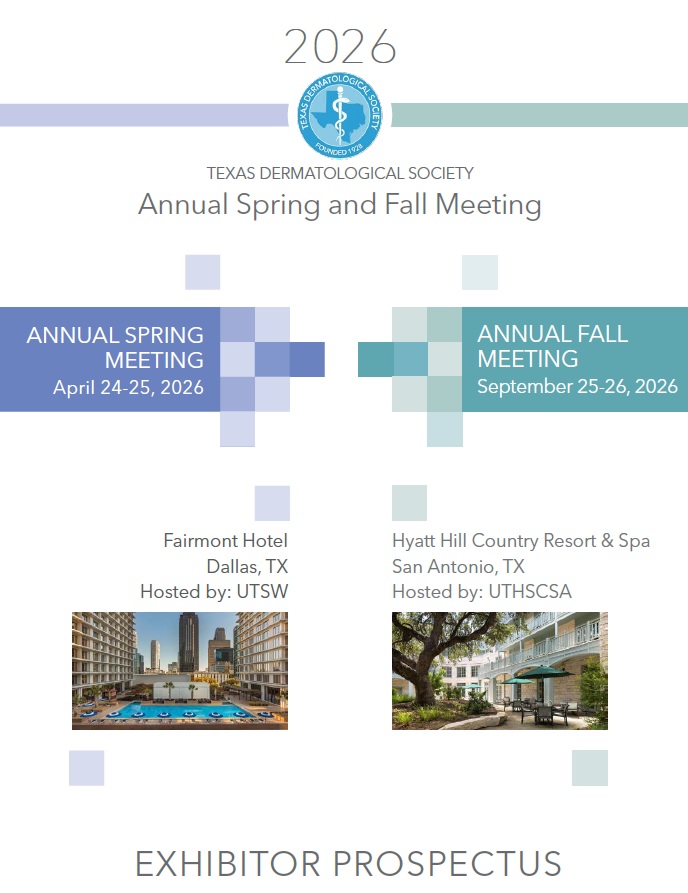 Join the Texas Dermatological Society (TDS) for our outstanding 2026 conferences! We're offering you the opportunity to register as an exhibitor for both the Spring and Fall Meetings at the same time - making it easier to plan ahead as budgets and schedules are often finalized early. Make plans to attend now!